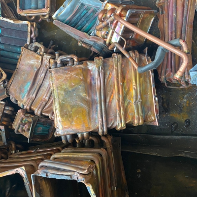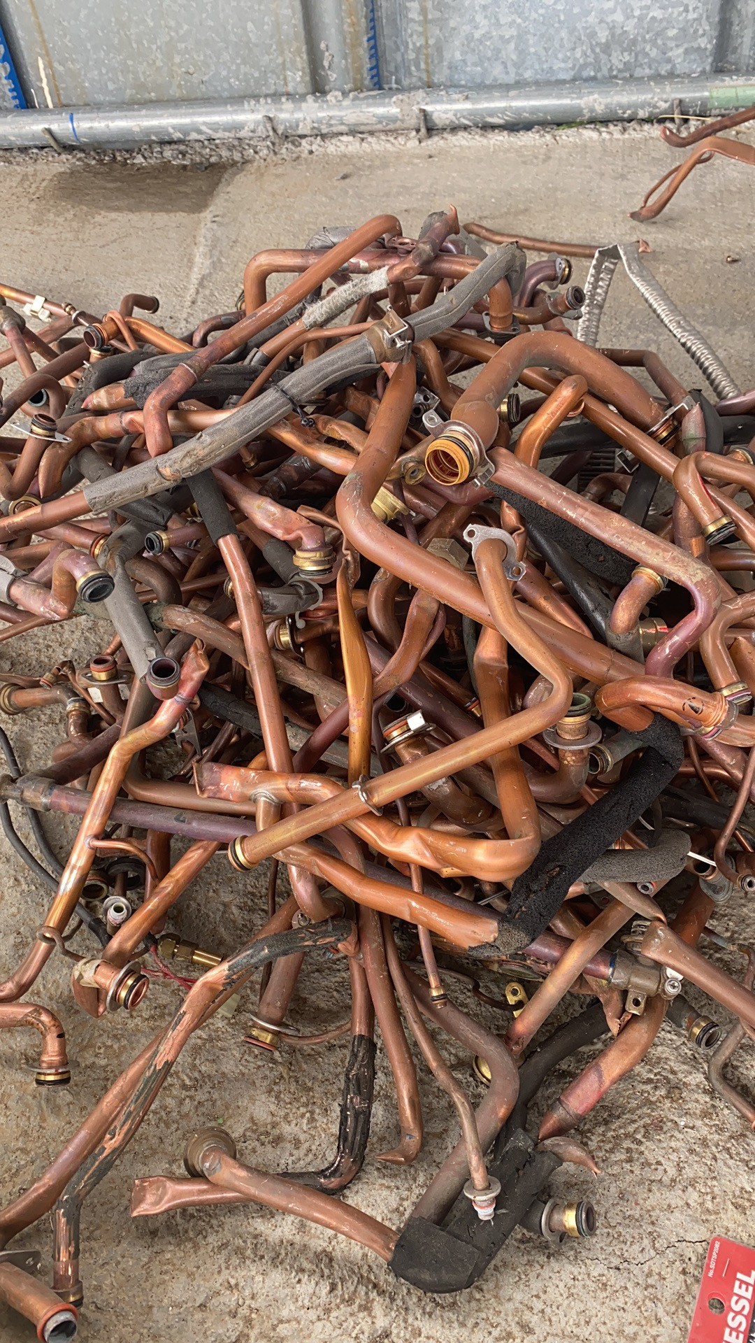 給湯器の心臓である銅製「赤釜」と「白釜」以外に、ガスを供給する「アルミ」製ダイカスト部品、水が通る「銅製」パイプ、「真鍮」製継手などが含まている。